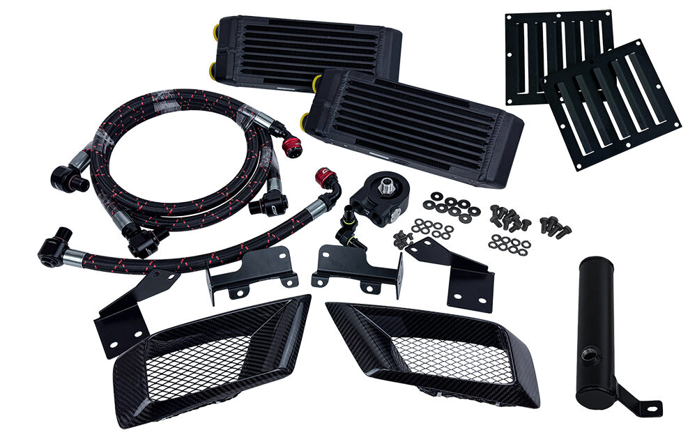 With proper airflow handled, CSF built the kit around our compact universal oil coolers (CSF #8119), using two of them to offer the greatest cooling capacity possible. Paired with Superstrasse CPE lined stainless steel braided lines and DYME Pro/Spec Quick Release Fittings, this kit is the most serviceable kit on the market.